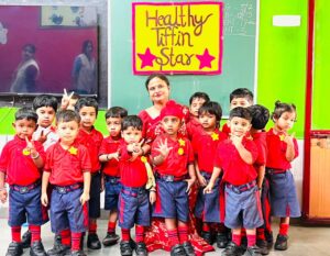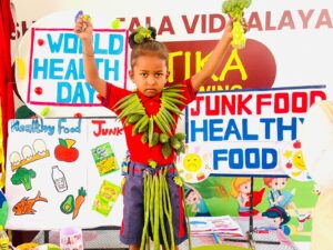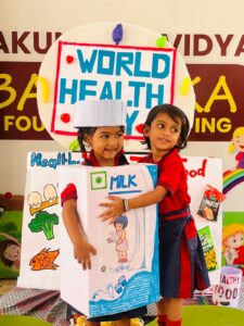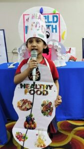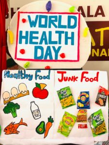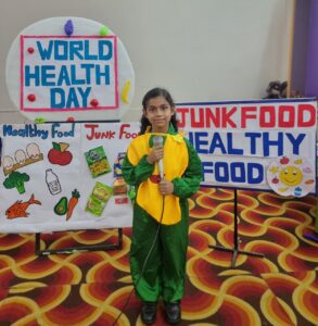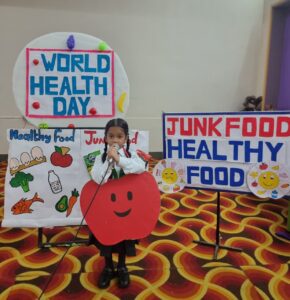 πΏπ Healthy Habits, Happy Life ππΏ A special assembly on World Health Day was conducted in our school. Students presented an introduction, an awareness skit, a yoga session, and activities on dental care and hand wash & hygiene. π§ββοΈπͺ₯π§Ό β¨ The special attraction by tiny tots was a Healthy vs Junk Food Fancy Dress Competition. ππ During the interval, students shared healthy tiffins together. * π Message of the Day β β Healthy Body, Healthy Mind.β*