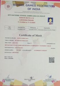 🏅 Proud Achievement! 🏅 Heartiest congratulations to Neeraj Kumar Sahu (Class VIII) for securing 2nd position in the -30 kg Karate (U-14) category at the 68th National School Games 2024-25, held in Ludhiana, Punjab! 🥋 In recognition of his outstanding performance, he has been awarded a cash prize of ₹15,000 by the Government of Chhattisgarh. 💰✨ His dedication and spirit have made SGS proud! 🌟 Keep rising, Karate Star! 🏅💥💥